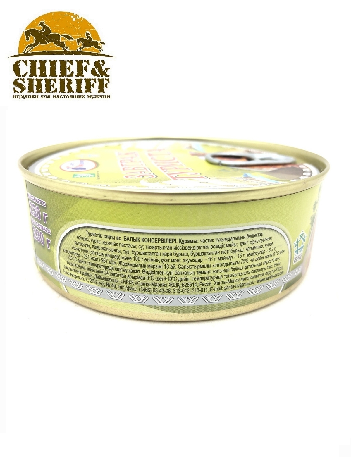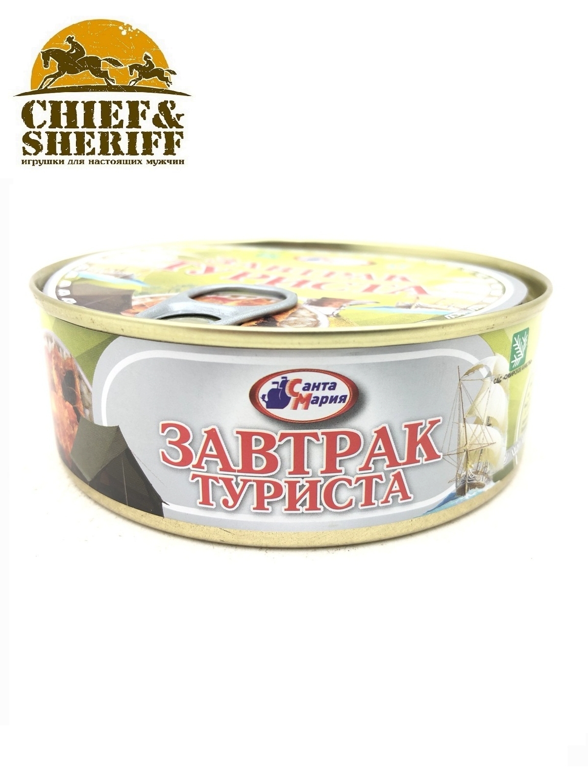 Рыбные консервы завтрак туриста от Санта Мария - это готовый продукт, который придется по вкусу любителям рыбных консервов. Изготовлен из свежей рыбы частиковых пород, выловленных в экологически чистых районах Югры. Эти консервы состоят из рыбы, риса, томатной пасты, воды, масла, сахара, уксуса, перца, лаврового листа, гвоздики и кориандра.