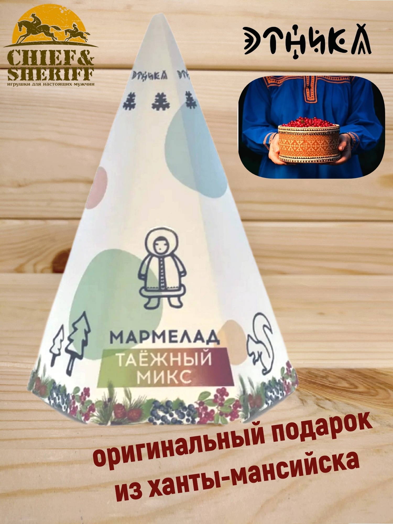Такая упаковка не случайна – жевательный мармелад производится в Ханты-Мансийском АО – Югре из дикорастущих ягод с добавлением кедрового сиропа.