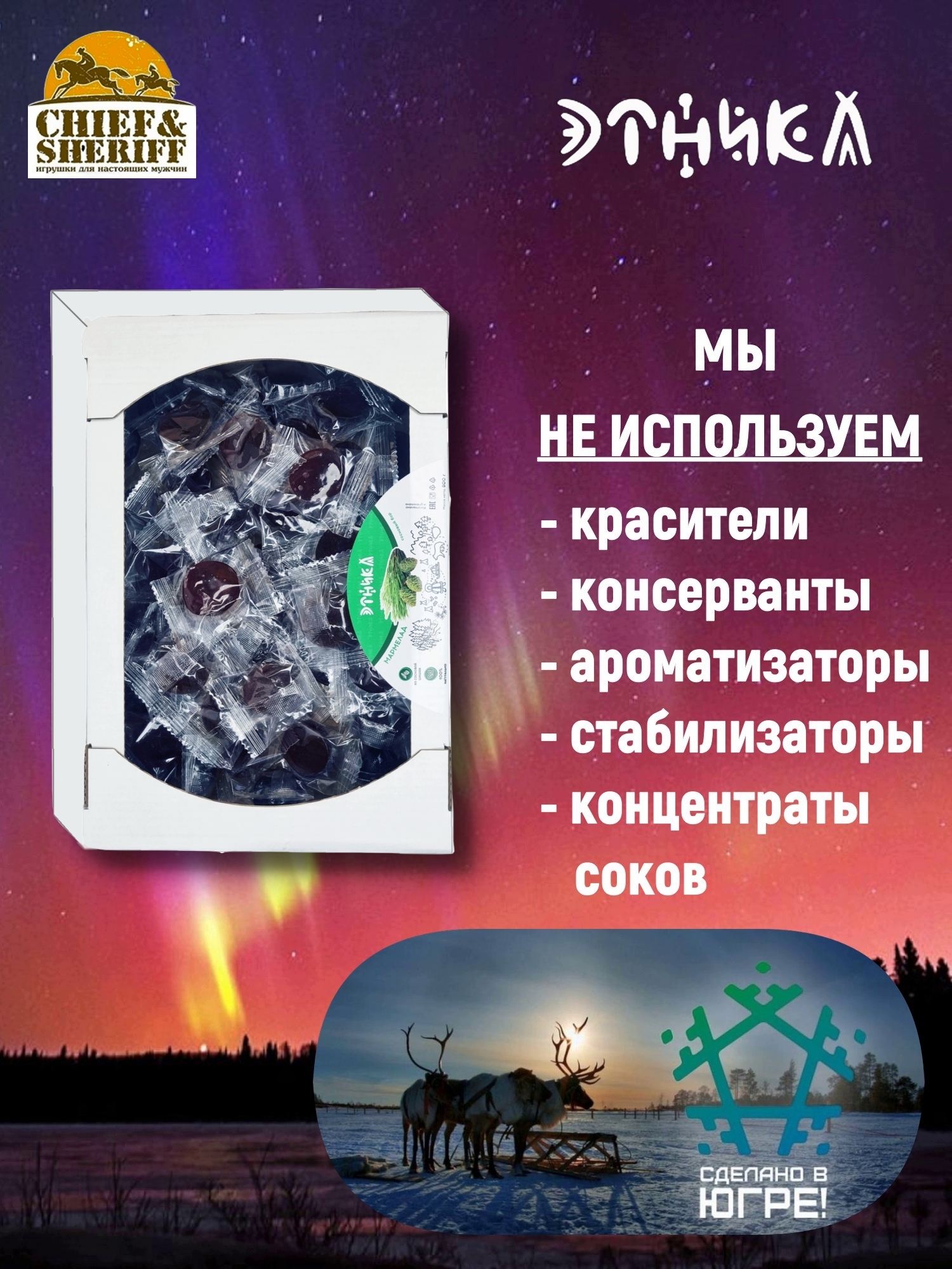 Мармелад эко-бокс "Сосновый бор" от компании Этника — это уникальный десерт, который станет отличным угощением для любителей сладкого. В этом продукте гармонично сочетаются натуральные ингредиенты и северные ягоды, что позволяет наслаждаться настоящим вкусом природы. Упаковка в виде стильного эко-бокса делает этот мармелад отличным вариантом для подарка.
