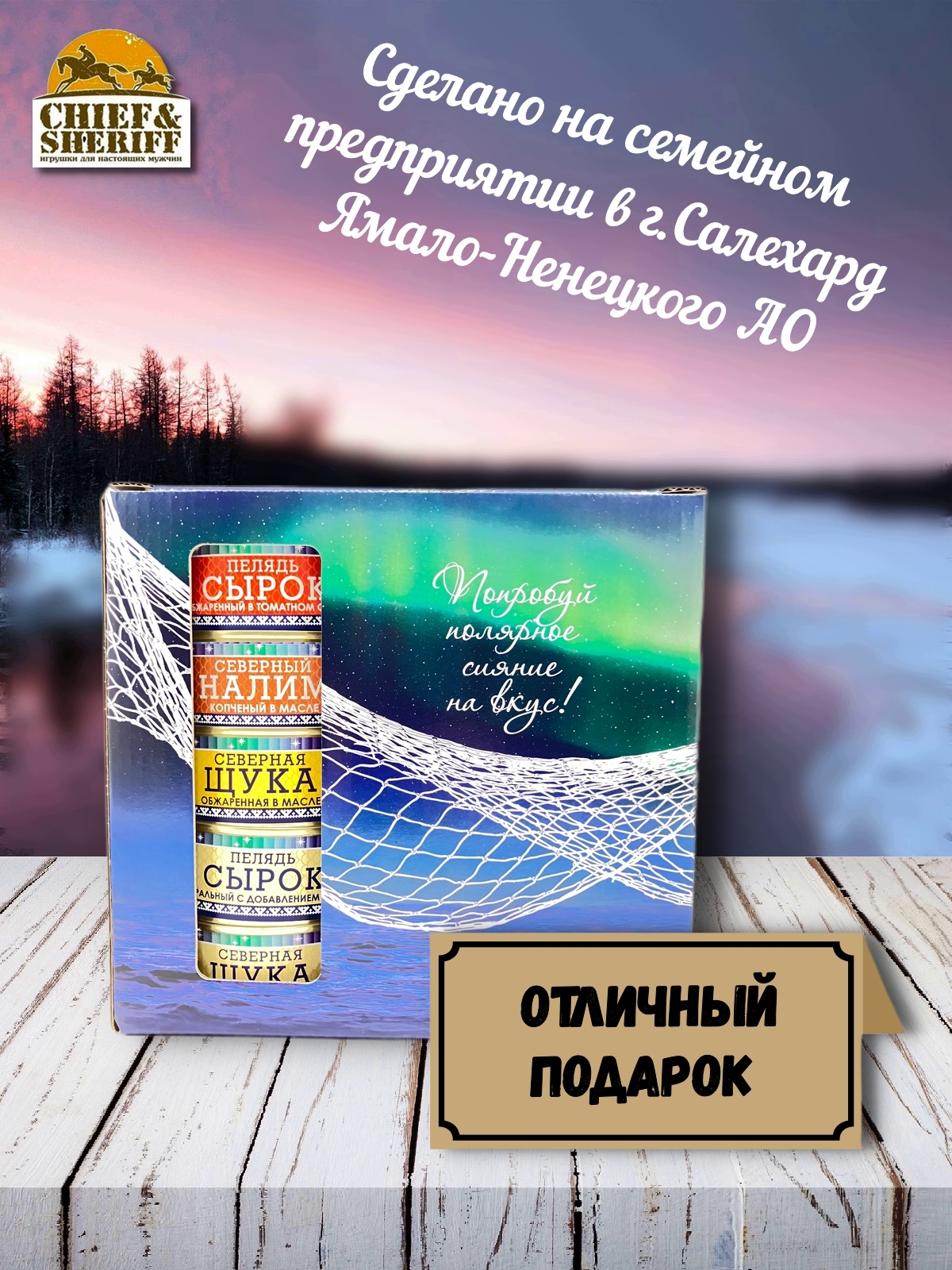 Компания "Орион", производитель рыбных консервов под брендом "Ямалик" - это семейное предприятие, имеющее многолетний опыт вылова и производства консервов из дикой рыбы. Вылов рыбы производится собственным флотом, а укладка консервов в банки - вручную. Консервы производятся в Салехарде. Никаких консервантов, только натуральные ингредиенты. Подарочный набор рыбных консервов "Ямалик", станет отличным подарком на Новый год, 23 февраля, да и на любой другой праздник! И помните, консервы "Ямалик" не купишь в сетевом магазине.