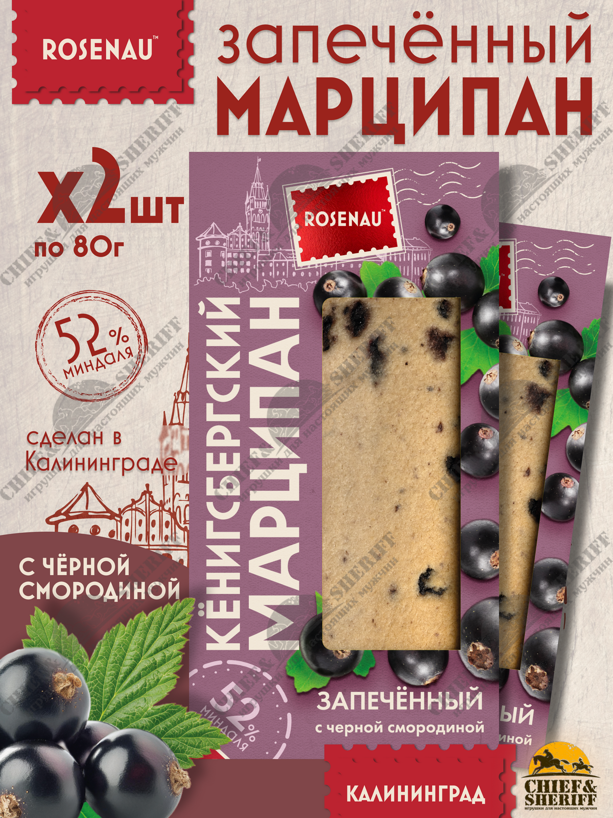 Марципан запеченный с черной смородиной (миндаль 52%), ROSENAU, 2 X 80 гр
