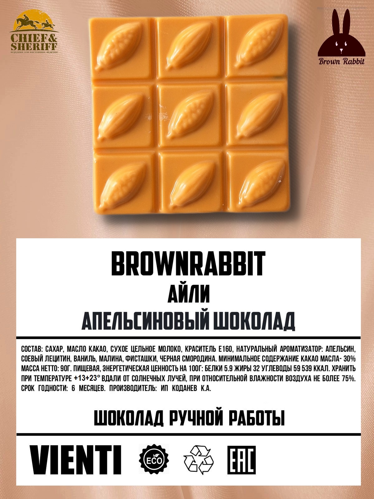 Апельсиновый шоколад AILI от компании Brown Rabbit - это первоклассный натуральный шоколад ручной работы в подарочной крафтовой упаковке.