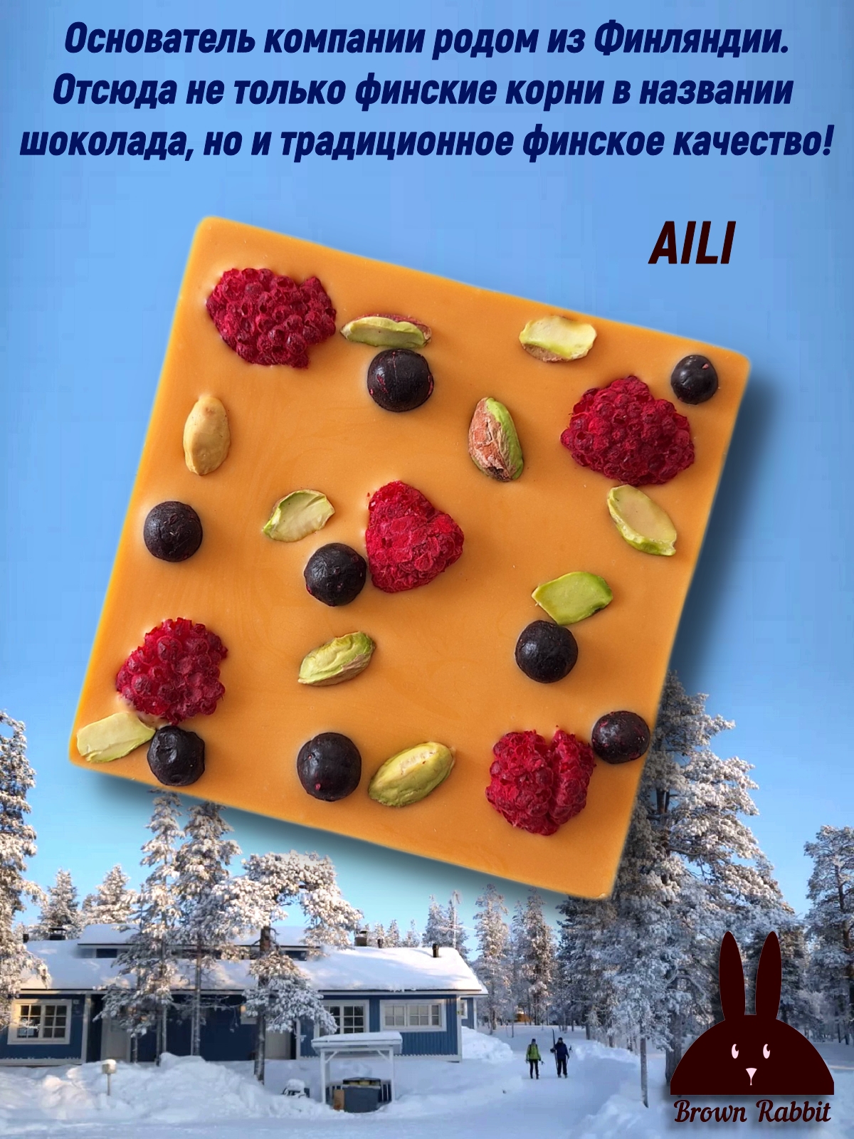 Возможно, вы уже пробовали шоколад с апельсином, шоколад с малиной, шоколад с фисташками или шоколад с черной смородиной. С шоколадом Айли мы предлагаем вам насладиться элегантным сочетанием всех этих вкусов! Искренне надеемся, что наш шоколад понравится вам или доставит радость тому, кому вы преподнесете его в подарок - мы очень старались!