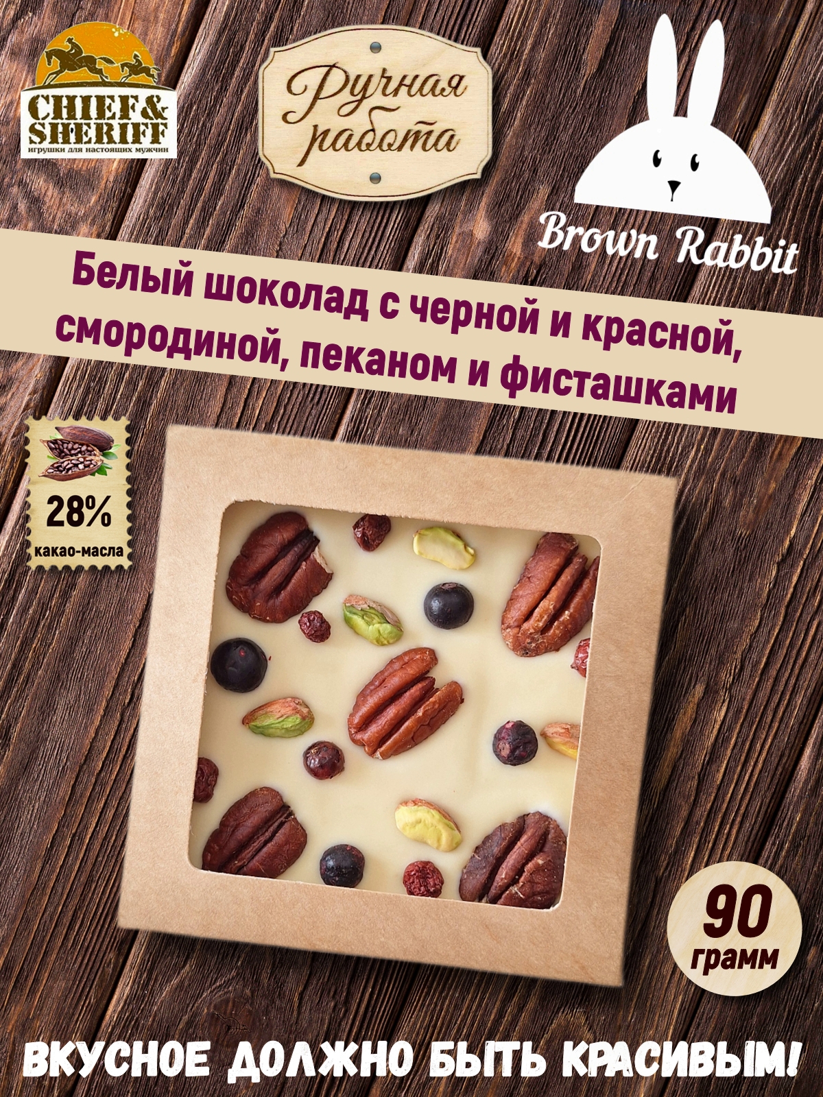 Белый шоколад BЕRTTA. Красная и чёрная смородина, пекан, фисташки, Brown Rabbit, 90 гр