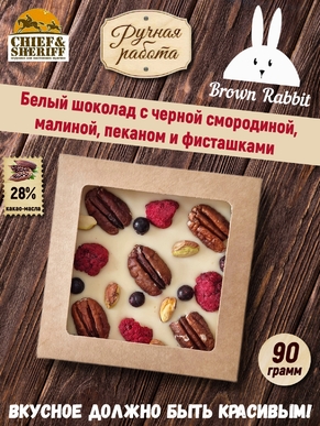 Белый шоколад IRENE. Малина, чёрная смородина, пекан, фисташки, Brown Rabbit, 90 гр