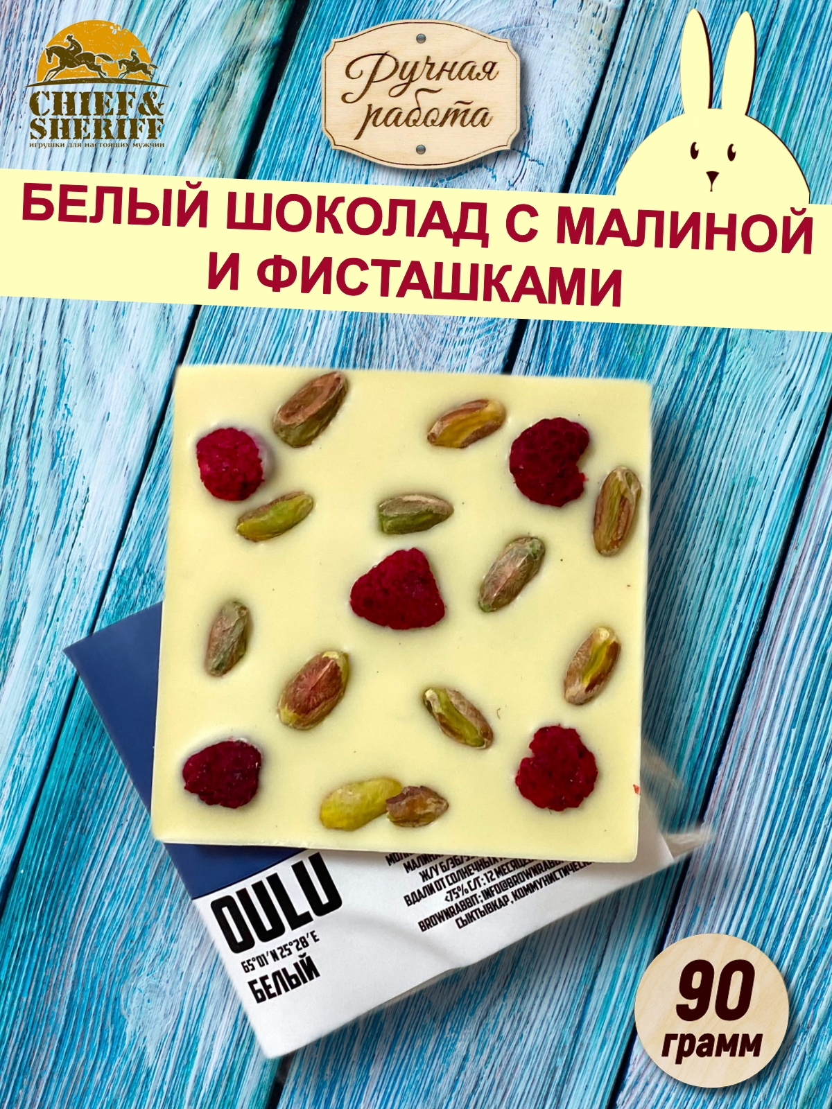 Белый шоколад OULU. Малина, фисташки, Brown Rabbit, 90 гр