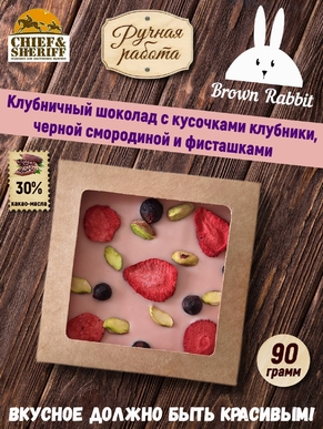 Клубничный шоколад SATU. Клубника, чёрная смородина, фисташка, Brown Rabbit, 90 гр