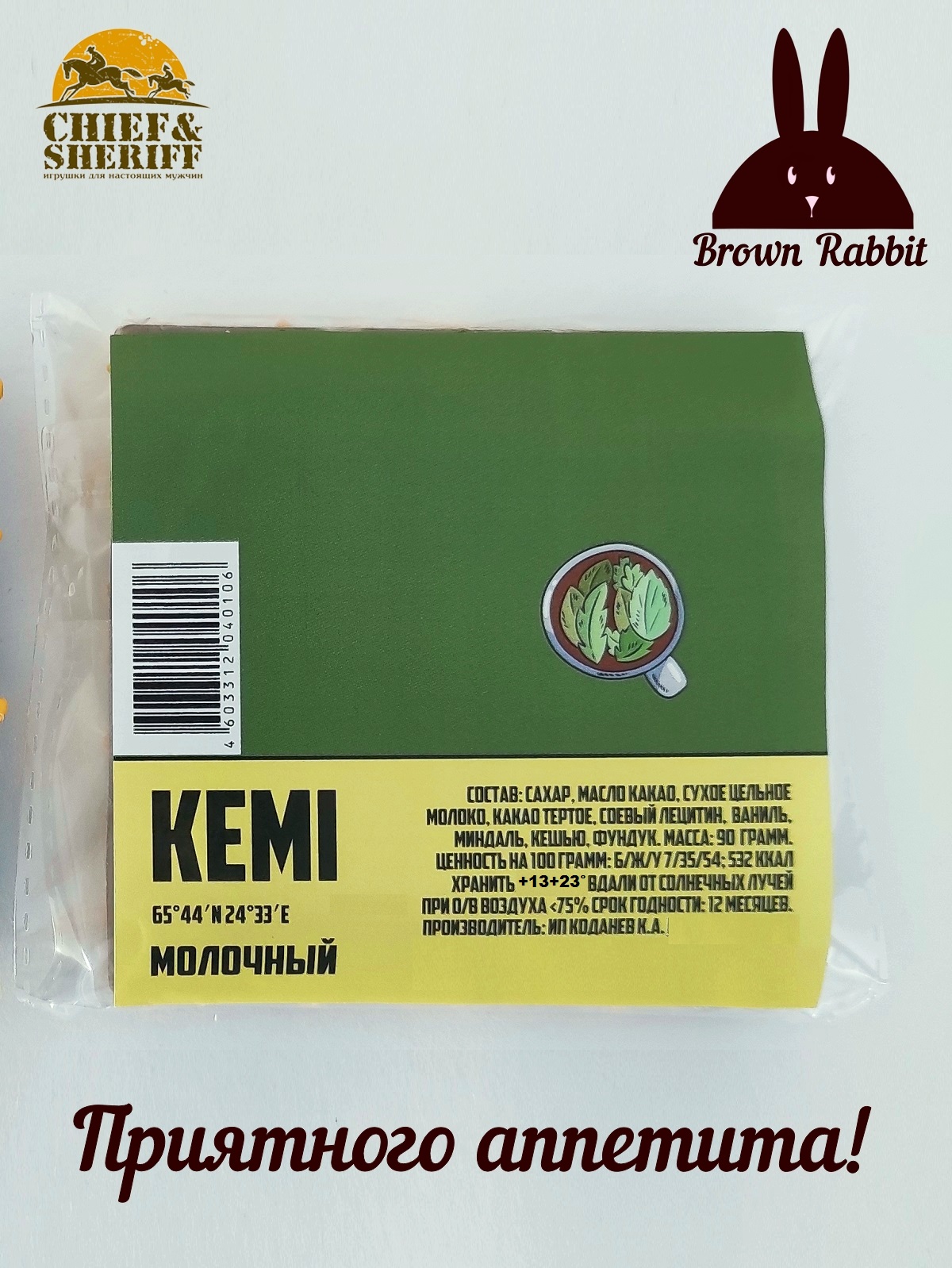 Молочный шоколад KEMI. Белый и апельсиновый шоколад, фундук, кешью, миндаль, Brown Rabbit, 90 гр