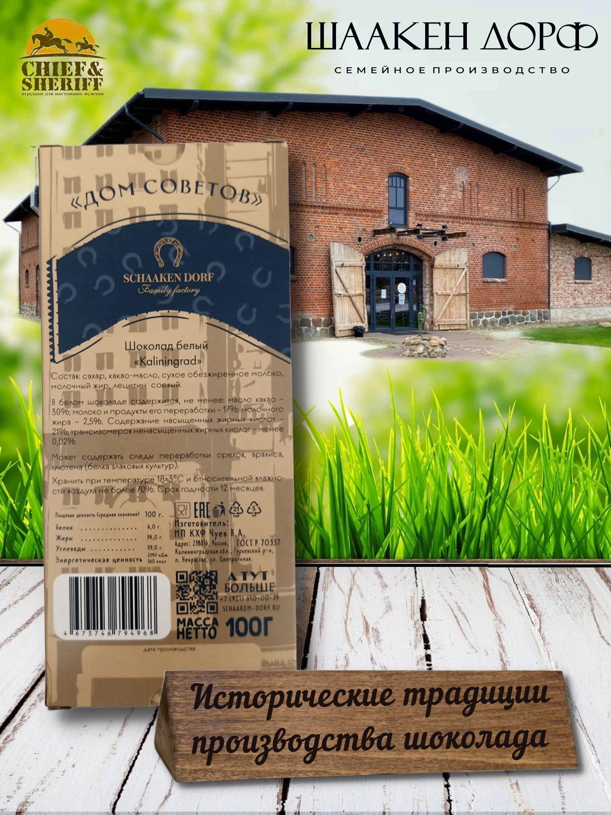 Погрузитесь в мир изысканных вкусов с белым шоколадом от SCHAAKEN DORF, представленным в роскошной упаковке из серии "Города". На упаковке этого шоколада - город Калининград и "Дом Советов". Этот шоколад не только порадует вас своим насыщенным вкусом, ведь содержание какао там - 30%, но и станет отличным подарком для ваших близких. Каждая плитка весит 100 граммов, что делает ее идеальной для совместного наслаждения или индивидуального угощения.