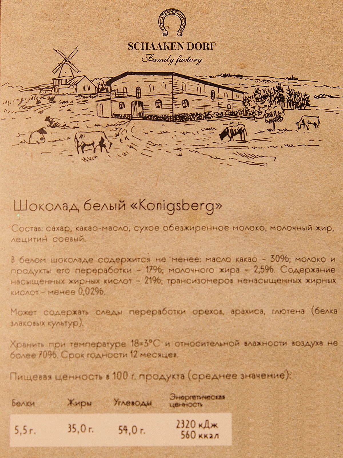 Отзывы — Шоколад белый, открытка "Konigsberg", SCHAAKEN DORF, 2 X 100 гр