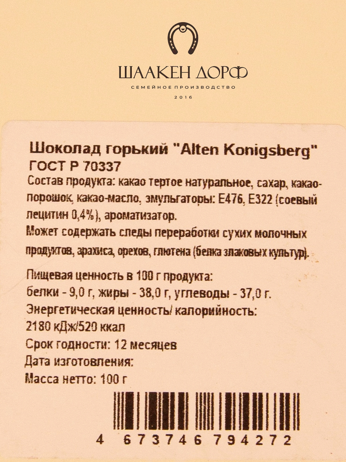 Отзывы — Шоколад горький 70%, открытка "Alten Konigsberg", SCHAAKEN DORF, 2 X 100 гр
