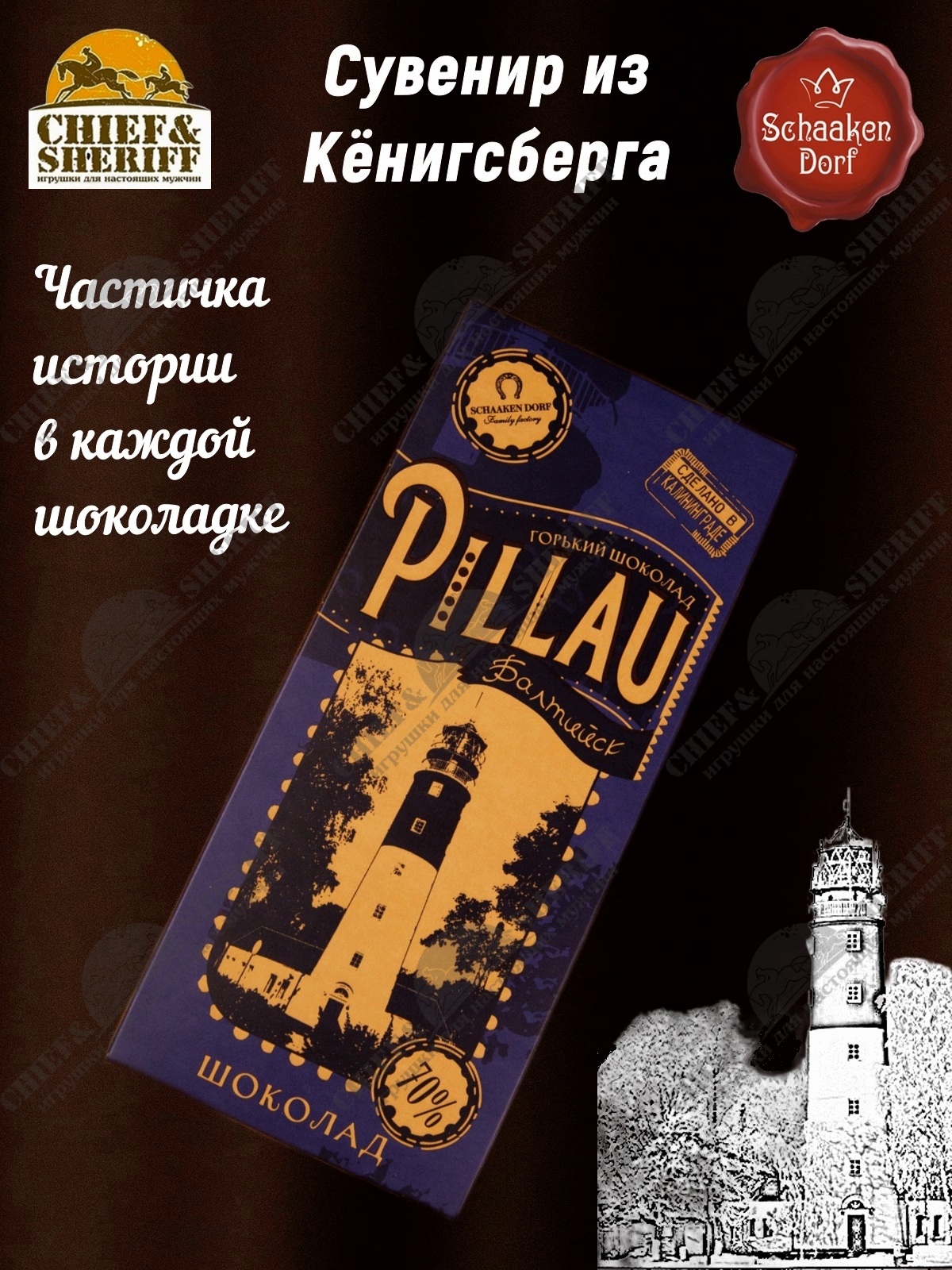 Погрузитесь в мир изысканных вкусов с горьким шоколадом от SCHAAKEN DORF, представленным в роскошной упаковке из серии "Города". На упаковке этого шоколада - Пиллау и "Балтийский маяк". Этот шоколад не только порадует вас своим насыщенным вкусом, ведь содержание какао там - 70%, но и станет отличным подарком для ваших близких. Каждая плитка весит 100 граммов, что делает ее идеальной для совместного наслаждения или индивидуального угощения.