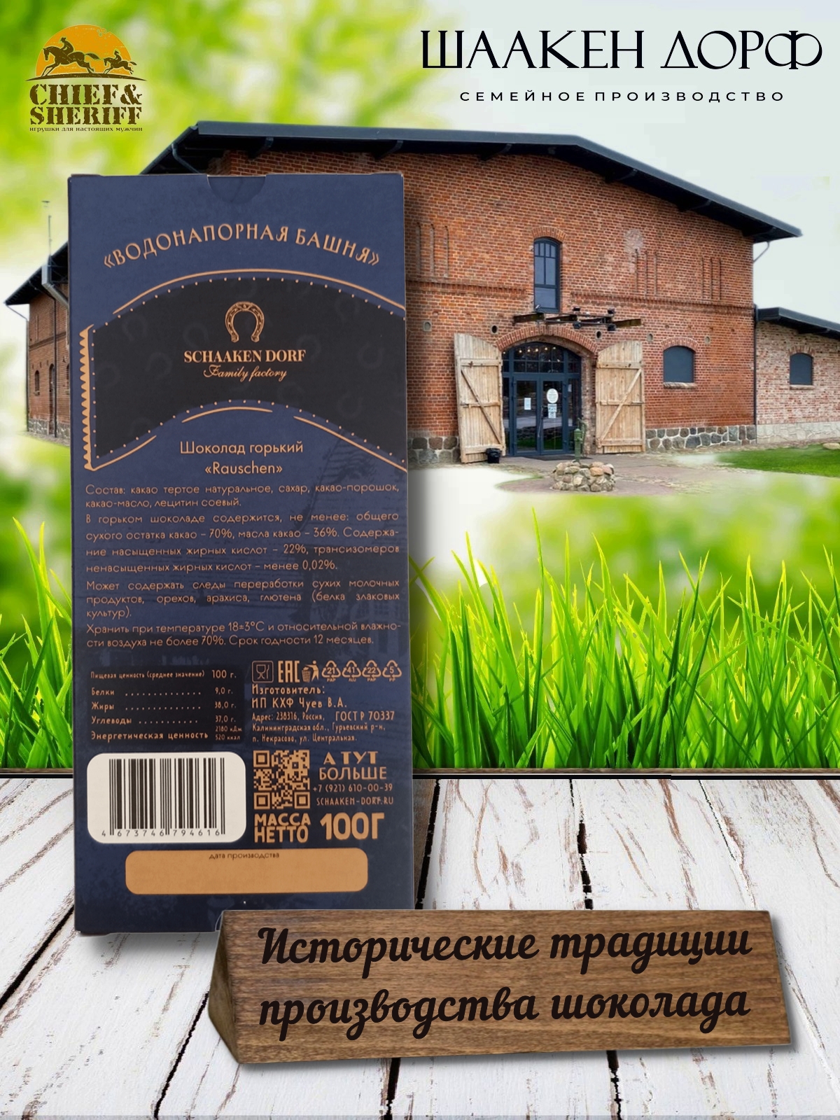 Шаакен Дорф - семейное производство сыра, марципана, шоколада, конфет и зефира. Производство компании Шаакен Дорф находится в Калининграде, в здании, которое когда-то было конюшней при замке Шаакен - рыцарей еще тевтонского ордена. Сейчас на первом этаже находится производство сыра. На втором этаже располагается небольшое кондитерское производство. Здесь вручную варится зефир, делаются карамелизированные апельсины в темном шоколаде, сублимированные ягоды, а также создается абсолютно разный и такой всеми полюбившийся калининградский марципан. В 2024 году, компания Шаакен Дорф стала победителем в номинациях «Лучшее туристическое направление года в номинации агротуризм», «Лучшее крестьянско-фермерское хозяйство», «Лучшее хозяйство в отрасли переработки молока», «Лучший объект туристического показа» и многих других!