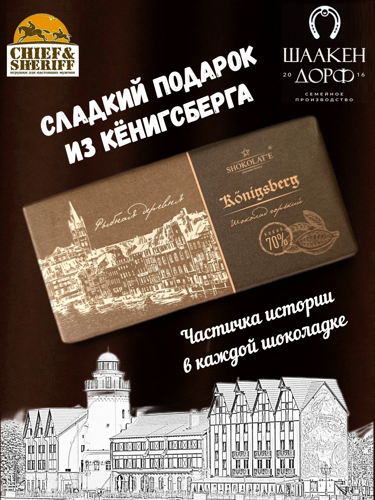 Погрузитесь в мир изысканных вкусов с горьким шоколадом от SCHAAKEN DORF, представленным в роскошной упаковке из серии "Города". На упаковке этого шоколада - город Konigsberg, ныне Калининград. Этот шоколад не только порадует вас своим насыщенным вкусом, но и станет отличным подарком для ваших близких. Каждая плитка весит 100 граммов, что делает ее идеальной для совместного наслаждения или индивидуального угощения.