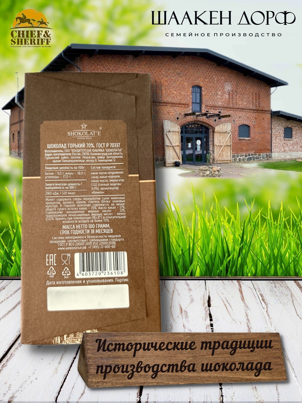 Шаакен Дорф - семейное производство сыра, марципана, шоколада, конфет и зефира. Производство компании Шаакен Дорф находится в Калининграде, в здании, которое когда-то было конюшней при замке Шаакен - рыцарей еще тевтонского ордена. Сейчас на первом этаже находится производство сыра. На втором этаже располагается небольшое кондитерское производство. Здесь вручную варится зефир, делаются карамелизированные апельсины в темном шоколаде, сублимированные ягоды, а также создается абсолютно разный и такой всеми полюбившийся калининградский марципан. В 2024 году, компания Шаакен Дорф стала победителем в номинациях «Лучшее туристическое направление года в номинации агротуризм», «Лучшее крестьянско-фермерское хозяйство», «Лучшее хозяйство в отрасли переработки молока», «Лучший объект туристического показа» и многих других!