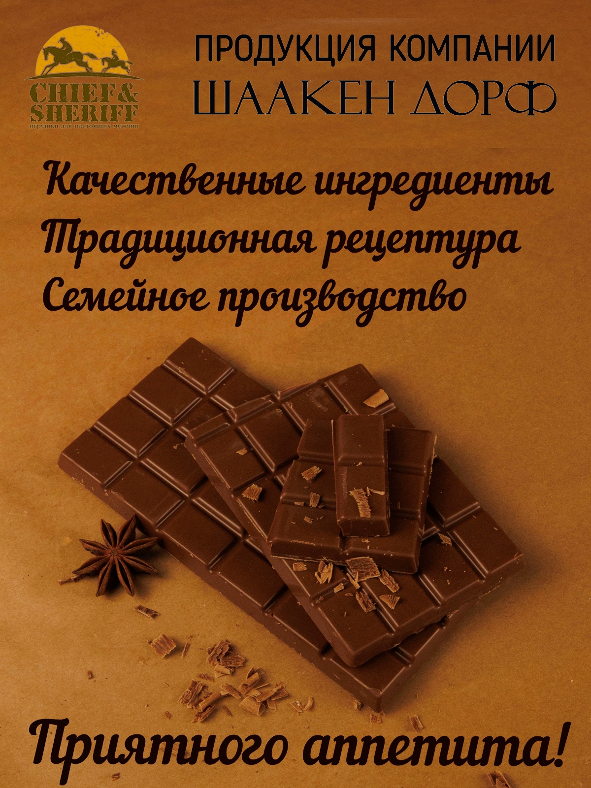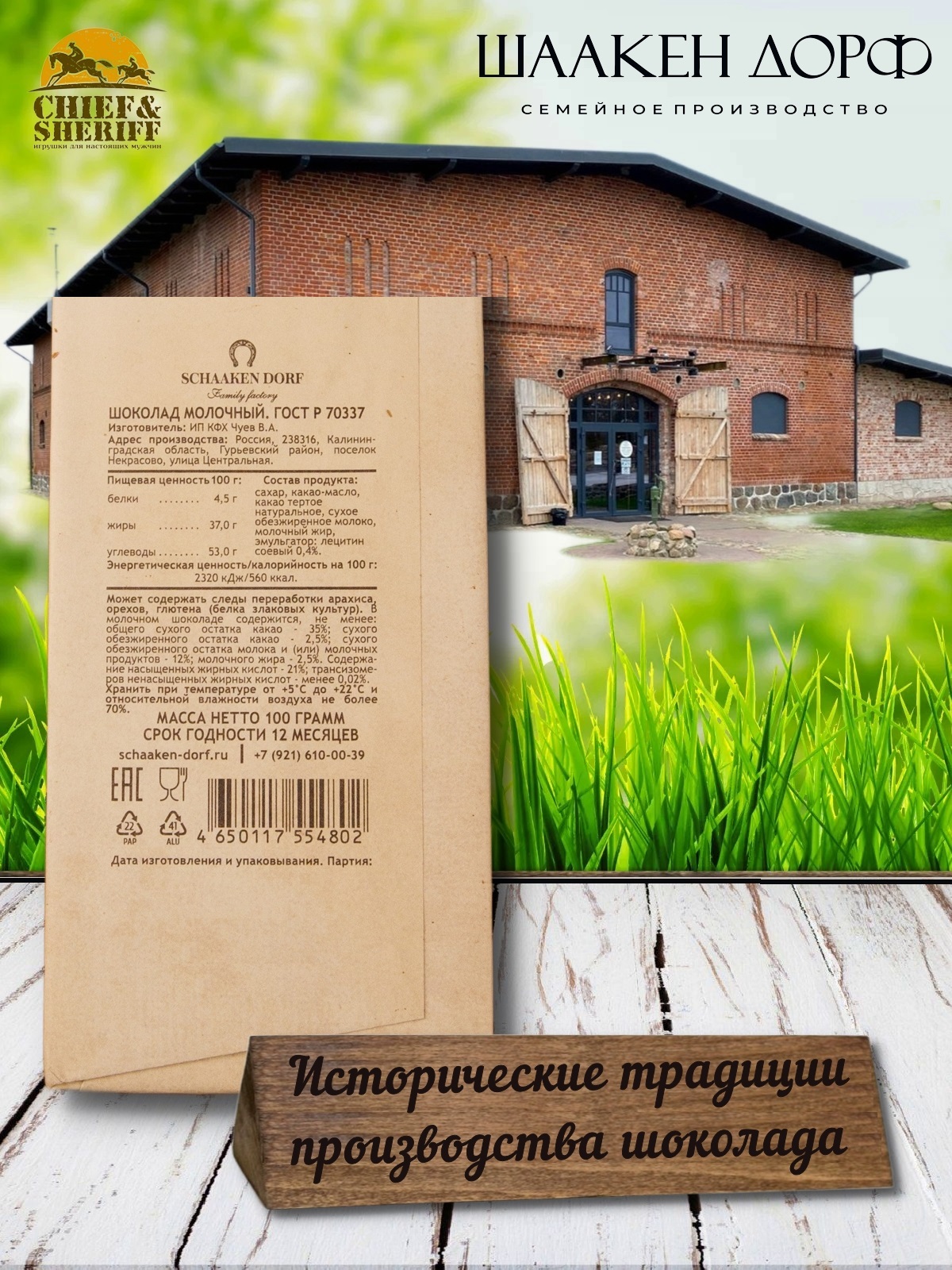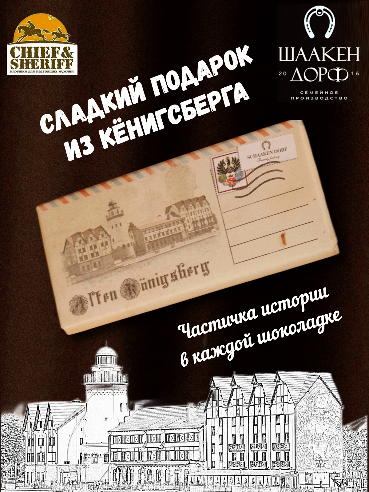 Шаакен Дорф - семейное производство сыра, марципана, шоколада, конфет и зефира. Производство компании Шаакен Дорф находится в Калининграде, в здании, которое когда-то было конюшней при замке Шаакен - рыцарей еще тевтонского ордена. Сейчас на первом этаже находится производство сыра. На втором этаже располагается небольшое кондитерское производство. Здесь вручную варится зефир, делаются карамелизированные апельсины в темном шоколаде, сублимированные ягоды, а также создается абсолютно разный и такой всеми полюбившийся калининградский марципан. В 2024 году, компания Шаакен Дорф стала победителем в номинациях «Лучшее туристическое направление года в номинации агротуризм», «Лучшее крестьянско-фермерское хозяйство», «Лучшее хозяйство в отрасли переработки молока», «Лучший объект туристического показа» и многих других!