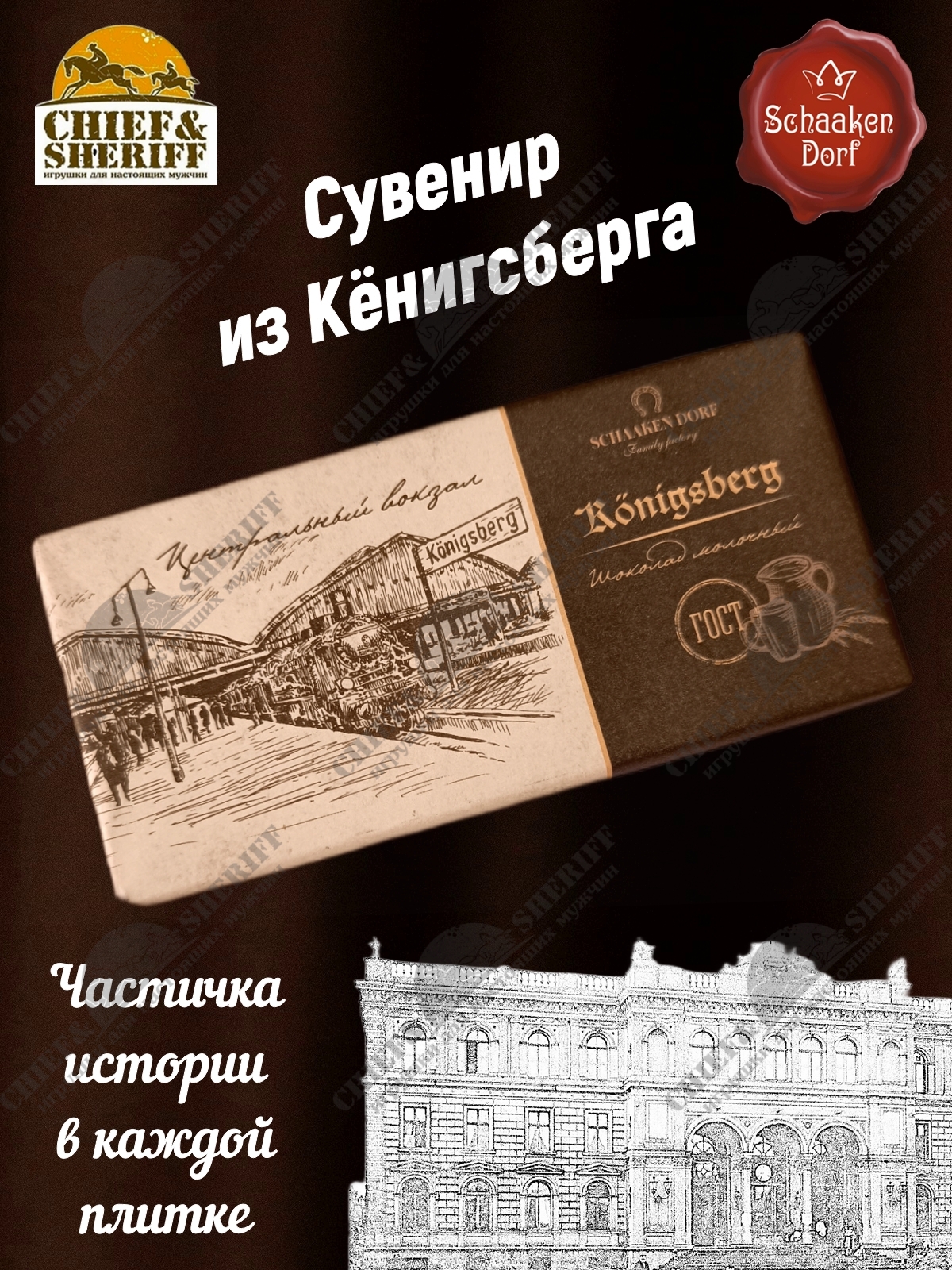 Погрузитесь в мир изысканных вкусов с молочным шоколадом от SCHAAKEN DORF, представленным в роскошной упаковке из серии "Города". На упаковке этого шоколада - город Konigsberg, ныне Калининград. Этот шоколад не только порадует вас своим насыщенным вкусом, но и станет отличным подарком для ваших близких. Каждая плитка весит 100 граммов, что делает ее идеальной для совместного наслаждения или индивидуального угощения.