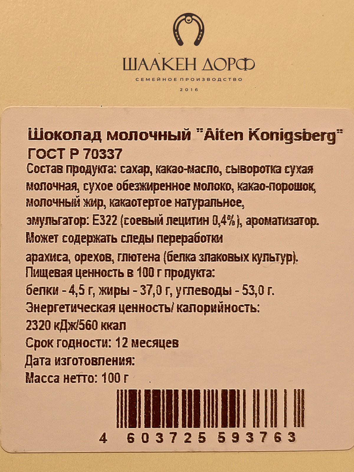 Отзывы — Шоколад молочный 35%, открытка "Alten Konigsberg", SCHAAKEN DORF, 2 X 100 гр