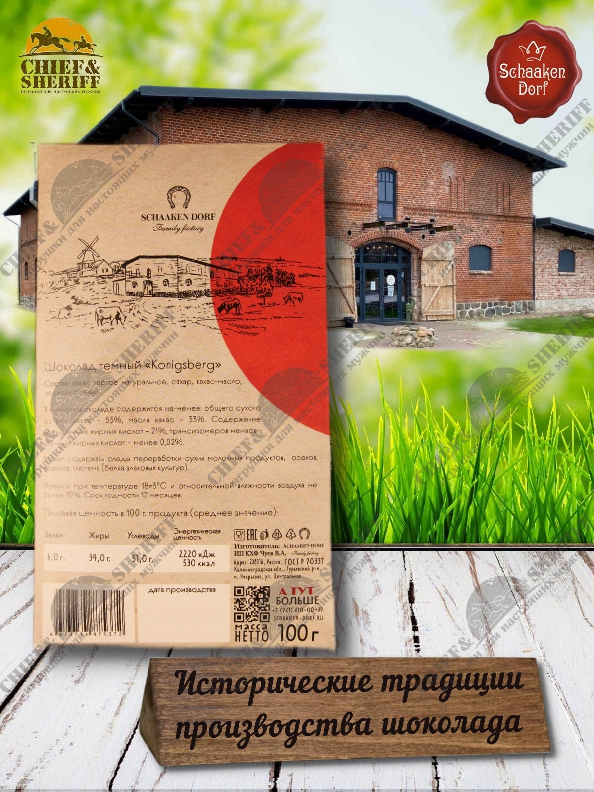 Шаакен Дорф - семейное производство сыра, марципана, шоколада, конфет и зефира. Производство компании Шаакен Дорф находится в Калининграде, в здании, которое когда-то было конюшней при замке Шаакен - рыцарей еще тевтонского ордена. Сейчас на первом этаже находится производство сыра. На втором этаже располагается небольшое кондитерское производство. Здесь вручную варится зефир, делаются карамелизированные апельсины в темном шоколаде, сублимированные ягоды, а также создается абсолютно разный и такой всеми полюбившийся калининградский марципан. В 2024 году, компания Шаакен Дорф стала победителем в номинациях «Лучшее туристическое направление года в номинации агротуризм», «Лучшее крестьянско-фермерское хозяйство», «Лучшее хозяйство в отрасли переработки молока», «Лучший объект туристического показа» и многих других!