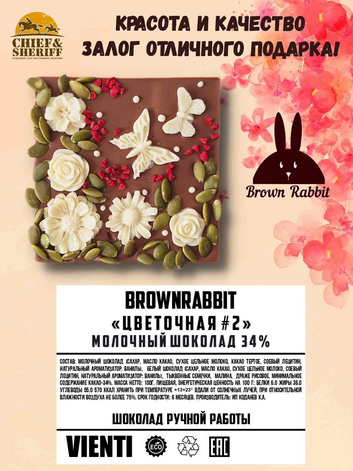 Отзывы — ЦВЕТОЧНАЯ №2. Молочный шоколад, белый шоколад, малина, тыквенные семечки, Brown Rabbit, 100 гр