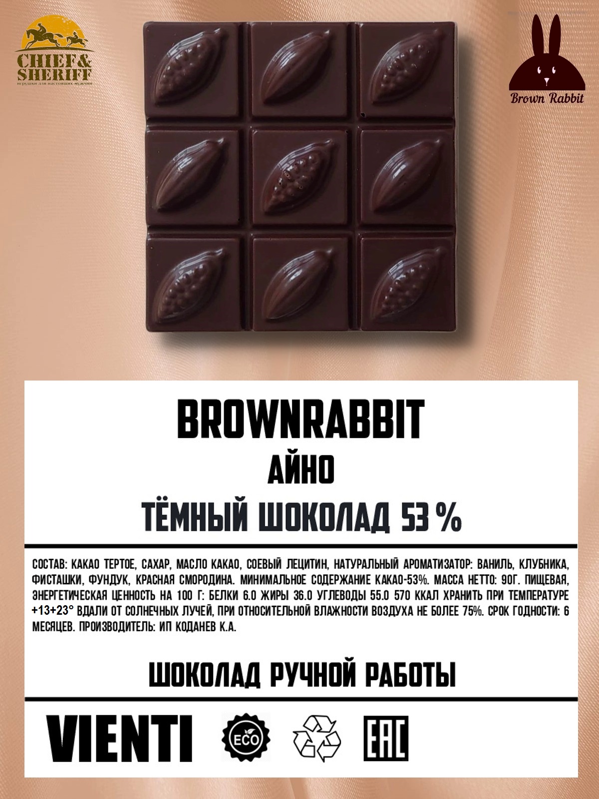 Тёмный шоколад AINO от компании Brown Rabbit - это первоклассный натуральный шоколад ручной работы в подарочной крафтовой упаковке.