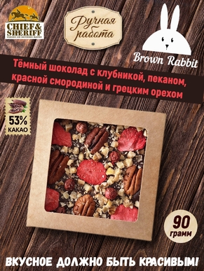 Тёмный шоколад MARTTA. Клубника, пекан, красная смородина, грецкий орех, Brown Rabbit, 90 гр