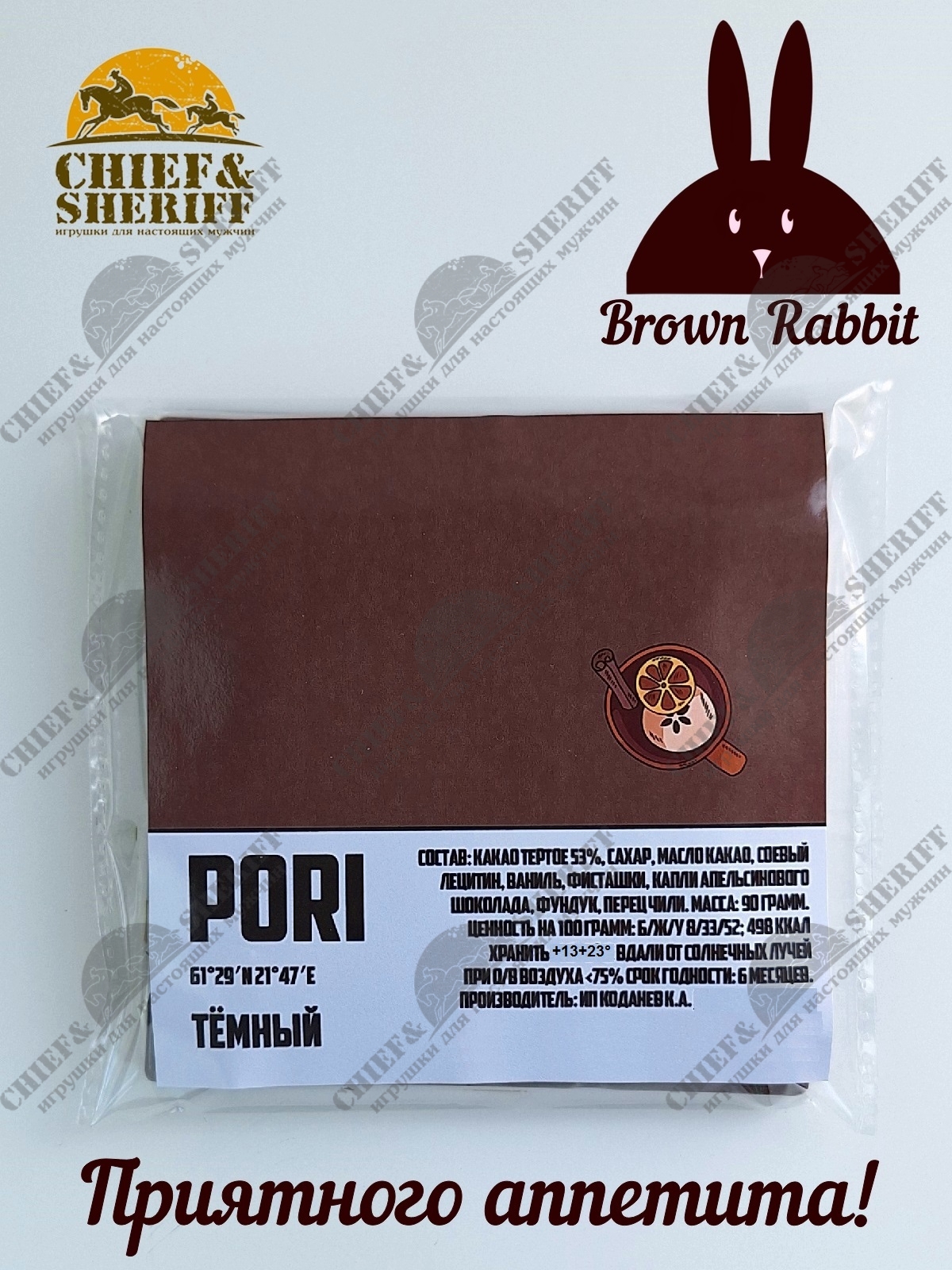 Тёмный шоколад PORI с каплями апельсинового от компании Brown Rabbit - это первоклассный натуральный шоколад ручной работы.