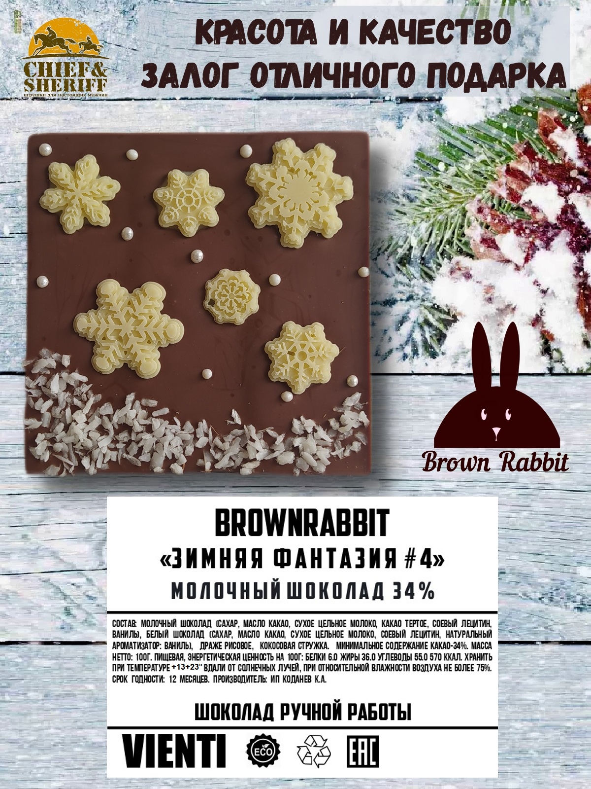 Зимняя №4. Молочный шоколад, белый шоколад, кокосовая стружка, Brown Rabbit, 100 гр