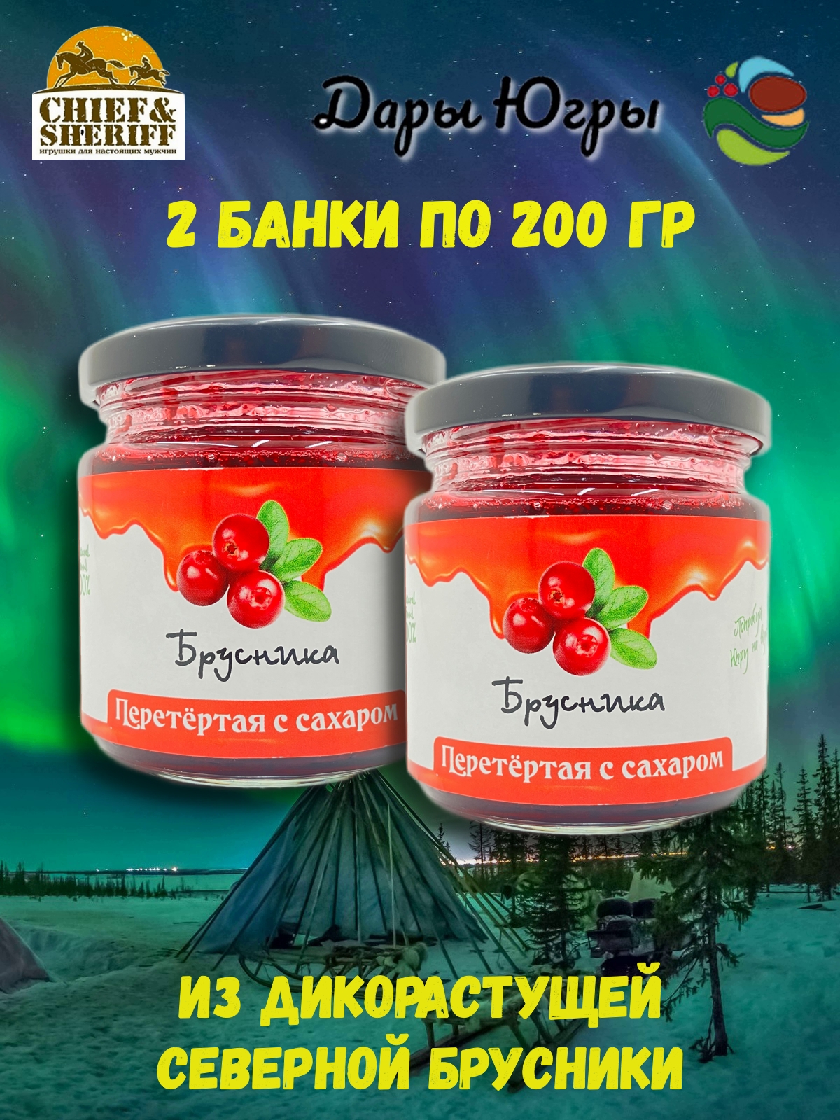 Брусника перетертая с сахаром, Дары Югры, 2 X 200 Брусника перетертая с сахаром, Дары Югры, 2 X 200