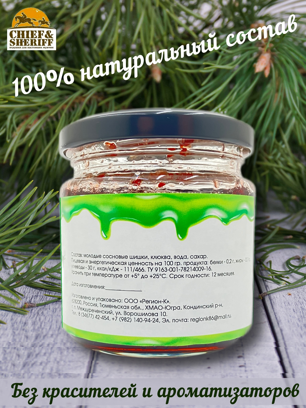 Варенье - десерт "Молодые сосновые шишки с лесной клюквой". Место сбора дикоросов Ханты-Мансийский автономный округ - Югра.