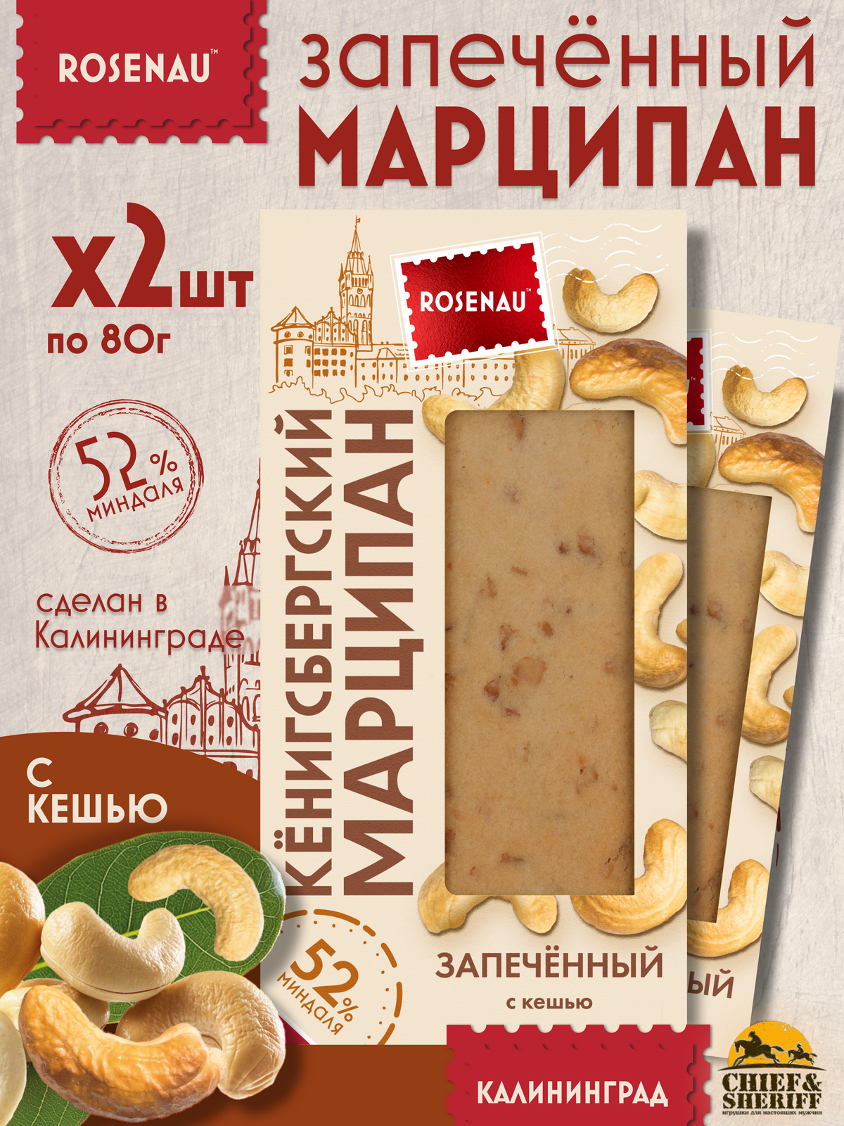 Марципан запеченный с кешью (миндаль 52%), ROSENAU, 2 X 80 гр