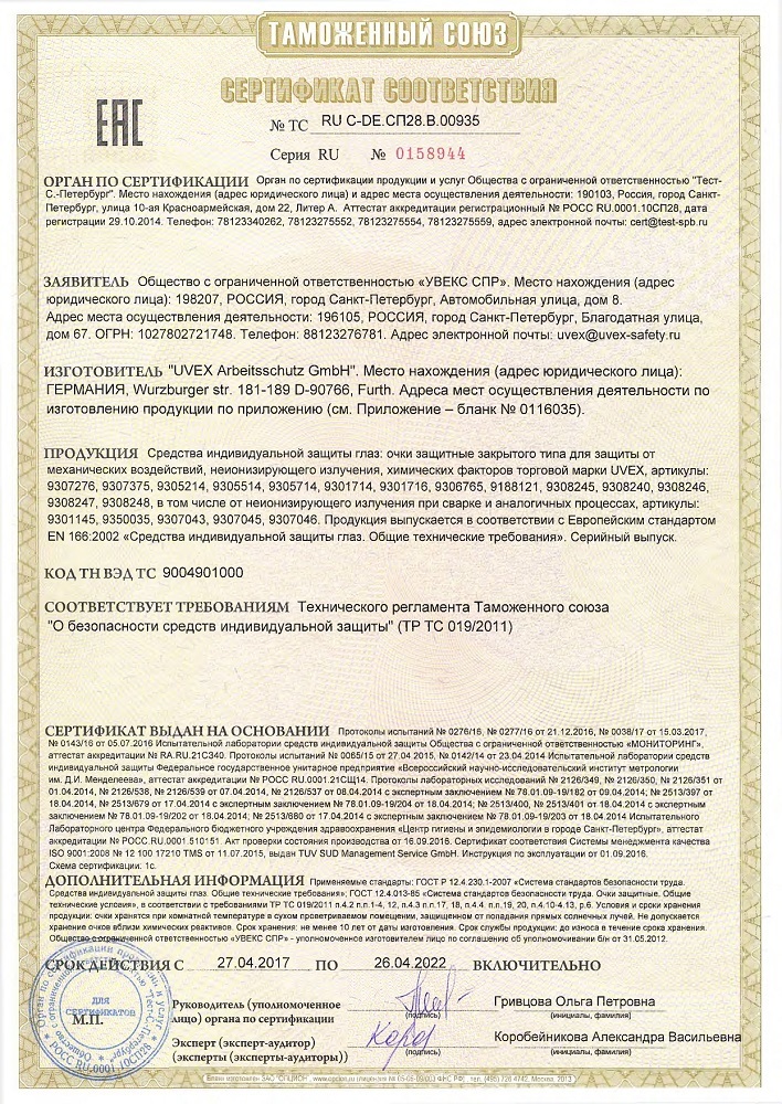 Стандарты EN 166, EN 169, ТР ТС 019/2011